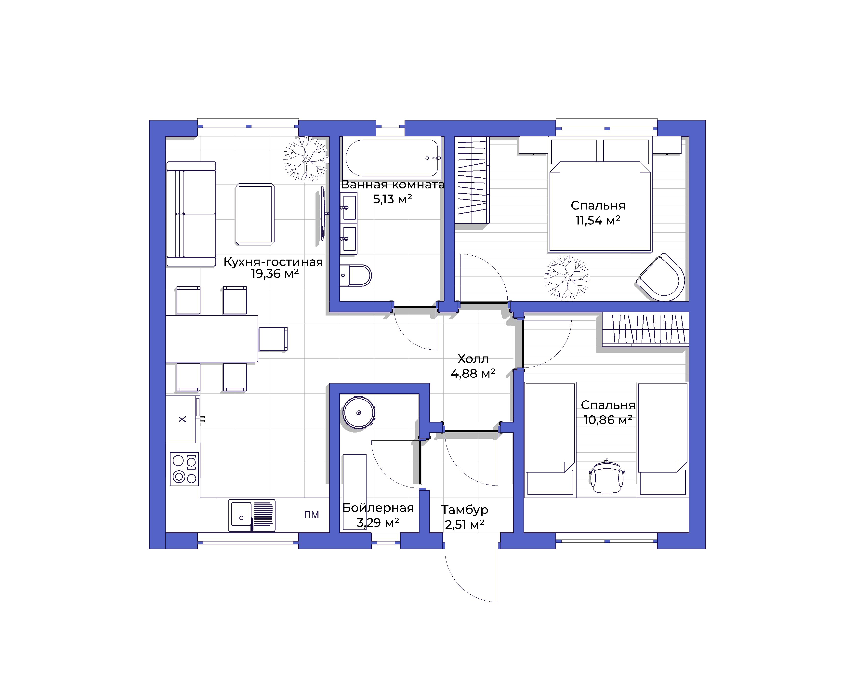Приглашаем на экскурсию по этому каркасно-модульному дому площадью 61 кв.м с чистовой отделкой.